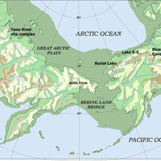 La Beringia, el puente de tierra que conectaba Asia (Siberia) con América del Norte (Alaska) durante las glaciaciones, tenía una anchura variable, dependiendo del nivel del mar en cada período.