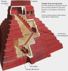 Lápida del sarcófago de K’inich Janaab’ Pakal (Palenque, cultura Maya clásica). Von Däniken la interpretó como un “astronauta antiguo” manejando controles de una nave, pero la iconografía y el texto maya indican que representa al propio rey con el árbol del mundo de su mitología es.wikipedia.org.
